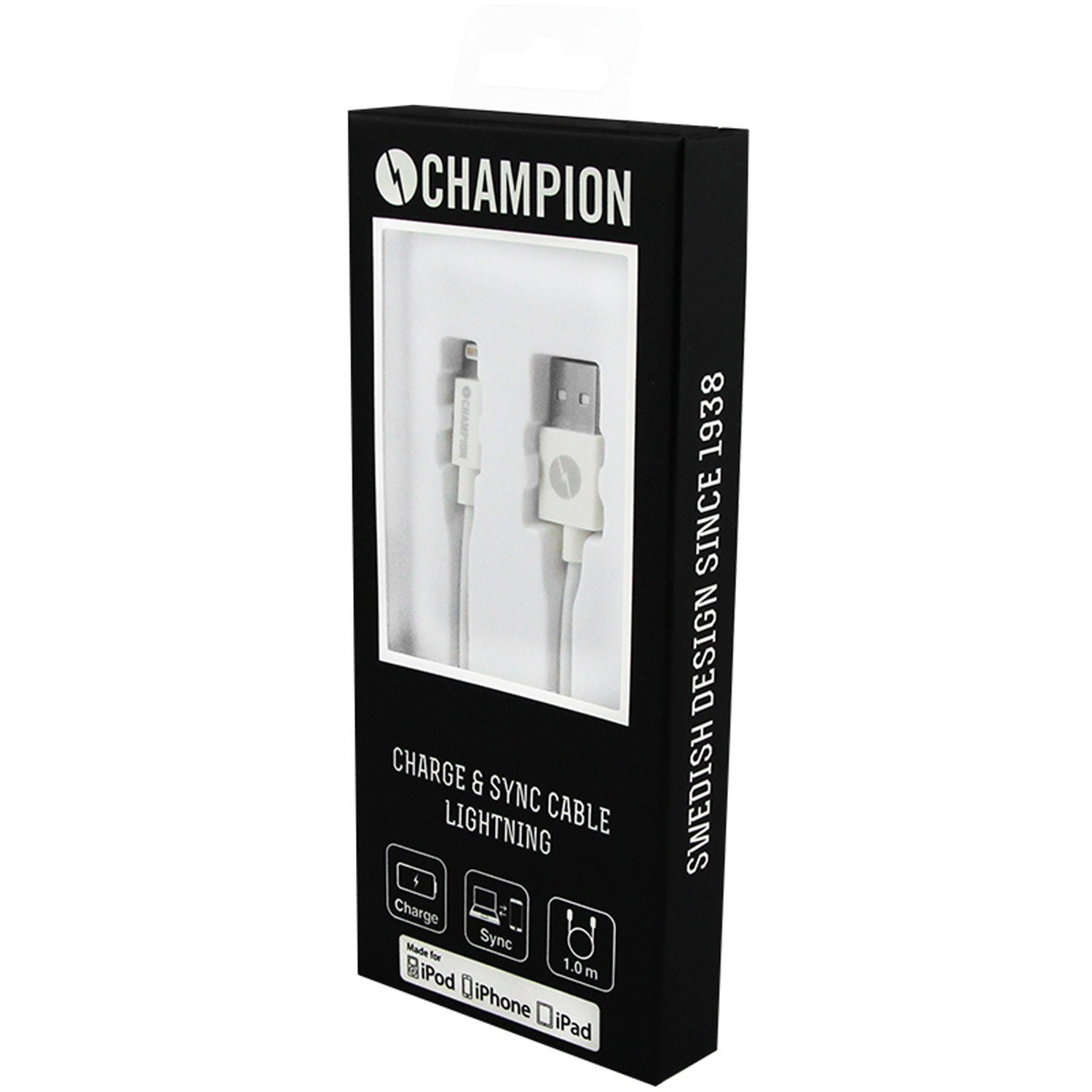 CHAMPION KABEL LIGHTNING TILL USB-A 1M VIT Artikelnr: 97121CH Lagersaldo: I lager - levereras inom 1-3 dagar (3 st)
